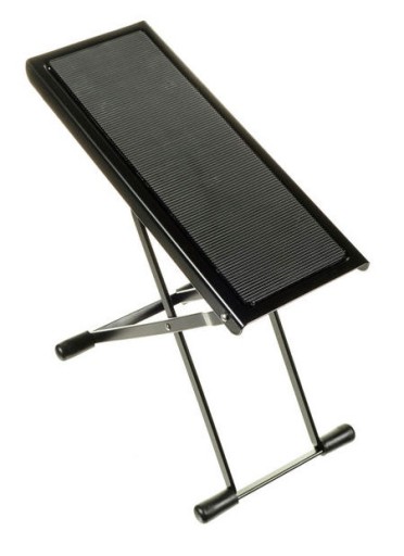 Podnóżek dla gitarzysty z regulowaną wysokością. Wykonany z metalu, w kolorze czarnym.