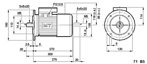 Двигатель B5 мощностью 0,25 кВт с тормозом и внешним охлаждением