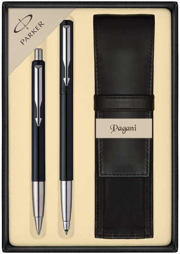 PARKER VECTOR PIÓRO KULKOWE + DŁUGOPIS + ETUI Z EKOSKÓRY kolor CZARNY