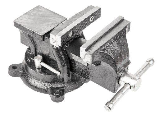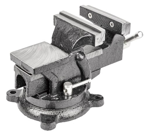 Wykonane jest z solidnej żeliwnej konstrukcji pozwalającej zachować najlepsze proporcje pomiędzy twardością i odpornością na pęknięcia metalu. Imadło posiada obrotową podstawę.