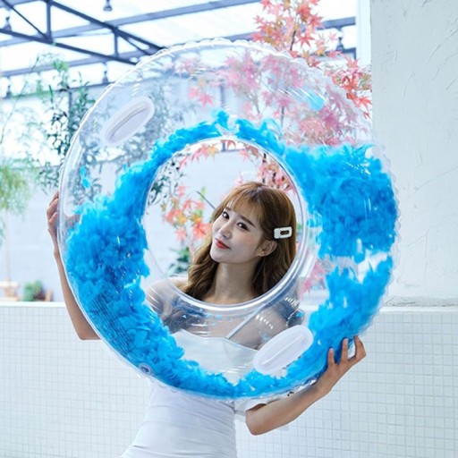 Dmuchane kółko jest lekkie i poręczne. Po wypuszczeniu powietrza nie zajmuje wiele miejsca i nie wymaga pompki do pompowania, co sprawia że można je zabrać w dowolne miejsce.
