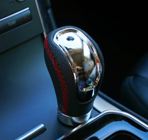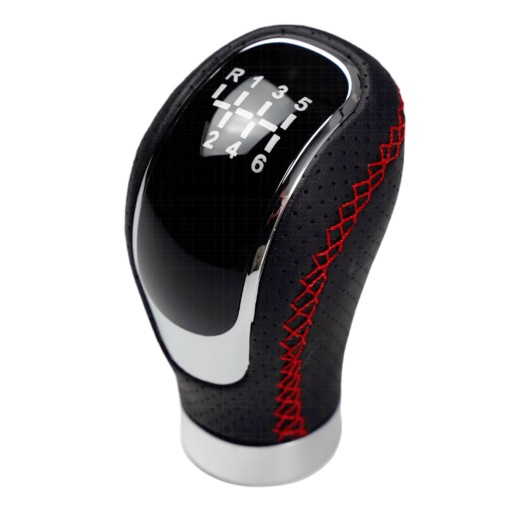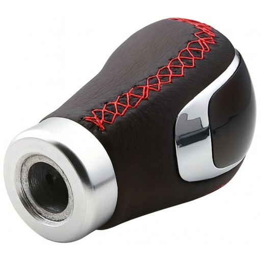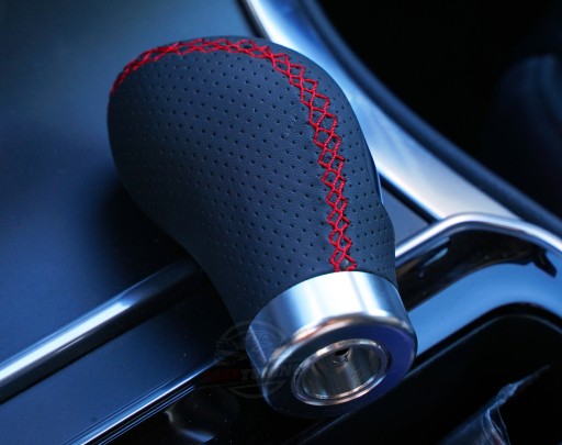 ✅ 1× gałka (skóra + chrom + czerwone przeszycie)
