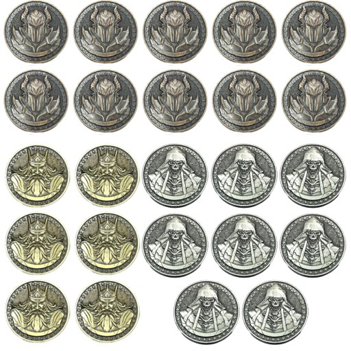 Metal robi wrażenie - zwłaszcza w połączeniu z motywem fantasy czy steampunku. Nic dziwnego, że metalowe monety do gier cieszą się tak dużym powodzeniem wśród graczy RPG, LARP, a także fanów gier strategicznych i ekonomicznych.