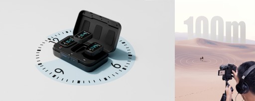Zasięg sygnału, jaki oferuje zestaw do bezprzewodowej transmisji dźwięku Saramonic Blink500 ProX B2 wynosi 100 metrów. Dzięki temu nagrywane osoby mogą swobodnie poruszać się z mikroportami po dużym terenie, a wysokiej jakości dźwięk zostanie zarejestrowany bez jakichkolwiek zakłóceń.