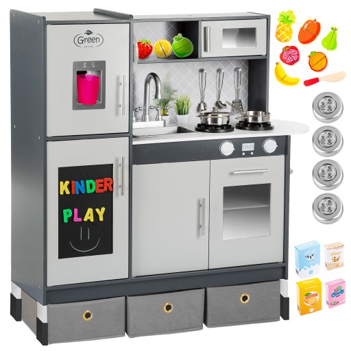Kuchnia w nowoczesnym stylu z serii Green to propozycja ciekawej i wciągającej zabawy dla dzieci, które chętnie naśladują zajęcia dorosłych i w bezpieczny sposób mogą bawić się w małych kucharzy.