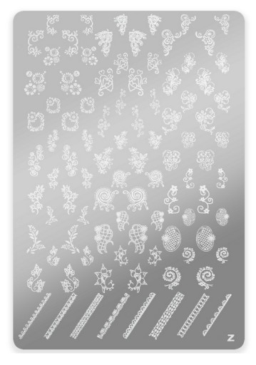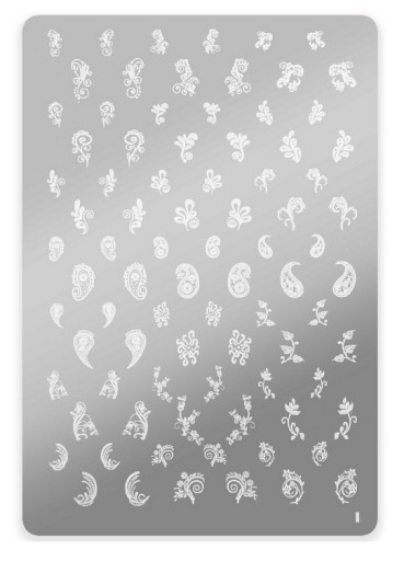 Blaszka przeznaczona do odbijania wzorów metodą stempelkową na paznokciach. Szybka i bardzo łatwa forma na precyzyjne zdobienia paznokci zarówno przy pomocy lakierów hybrydowych, jak i tradycyjnych dedykowanych tej metodzie. Wybierz swój wzór z ogromnej oferty płytek i zaskakuj wyjątkowym manicure.