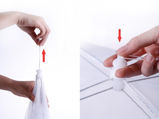 Konstrukcja moskitiery przypomina parasol, jest składana i bardzo łatwa w użyciu.