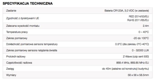 - Wykrywa nawet najmniejszy ruch oraz zmiany w temperaturze,