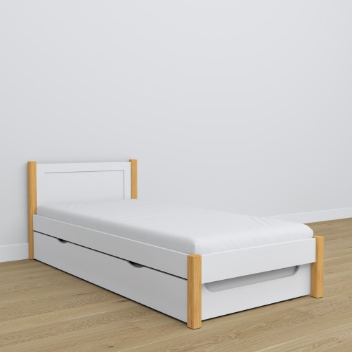 Drewniane łóżko pojedyncze z szufladą na materac N02 100x180