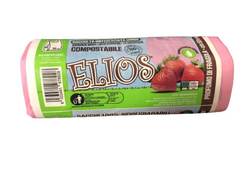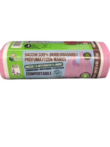 Biodegradowalne kompostowalne worki na śmieci z uszami o pojemności 35 litrów, zapachowe, o truskawkowym aromacie.