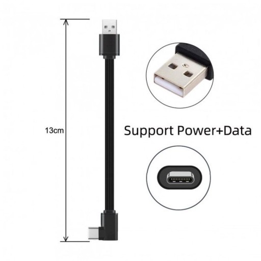 Kabel kątowy płaski USB 3.1 USB-C typ C - USB 13cm