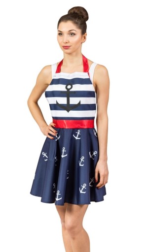 Nitly Marine - Fartuszek Sukienka jest miłym upominkiem dla zapalonej żeglarki, podróżniczki czy fanki wypróbowywania przepisów z różnych stron świata. Podaruj go uwielbiającej przygody siostrze, kochającej marynarskie wzory przyjaciółce lub marzącej o urlopie koleżance.