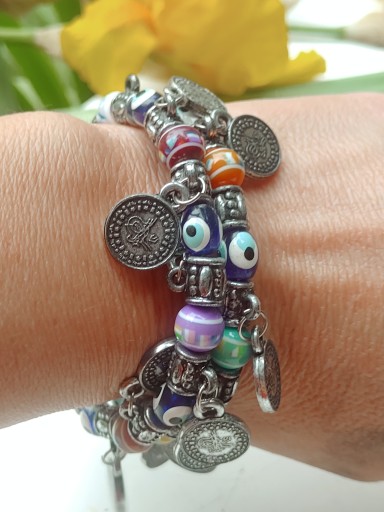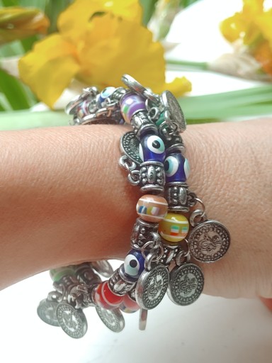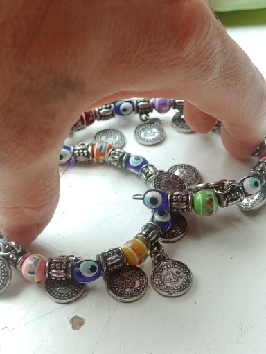 bransoleta Bransoletka spręzyna elastyczne reguloawny dowolny obwód, może być na ręke lub kostkę nogi, obwód regulowany 18-25cm, całkowita długośc to 35cm używana sporadycznie w stanie dobrym, brak 3 monet, zapraszam na inne aukcje