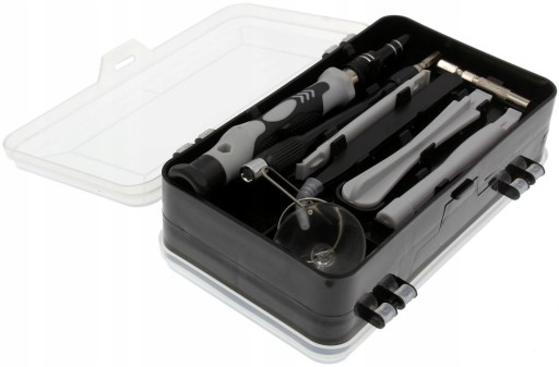 Zestaw najpopularniejszych bitów i nasadek wraz z wkrętakiem w poręcznym etui do każdego serwisu i domu. Zestaw zawiera wszystko, czego potrzebujesz do naprawy małej elektroniki. Posiada wkrętak precyzyjny z namagnesowanym uchwytem, doskonale utrzymującym bity. Etui jest zamykane, zawiera bity opisane w swoich przegródkach oraz inne narzędzia niezbędne do naprawy np. telefonów.