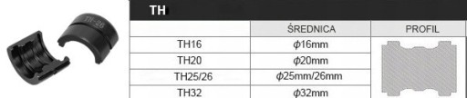 Szczęki zaciskowe - typ kamieni TH - 4 kamienie na rurę, o średnicy: 16, 20, 26, 32 mm.
