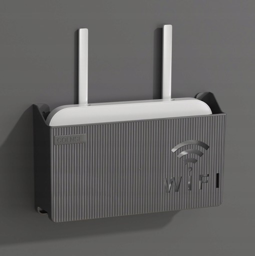 Idealne rozwiązanie dla każdego kto posiada w domu router. Plastikowa konstrukcja nie zaburza sygnału wifi. Możliwość montażu na śruby z kołkami lub pasy z mocną taśmą dwustronną.