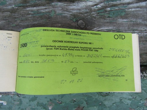 ФИАТ 126П 1983 г. ГАРАНТИЙНАЯ КНИГА