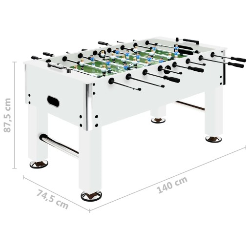 Stół do gry w piłkarzyki, stal, 60 kg, 140x74,5x87,5 cm, biały