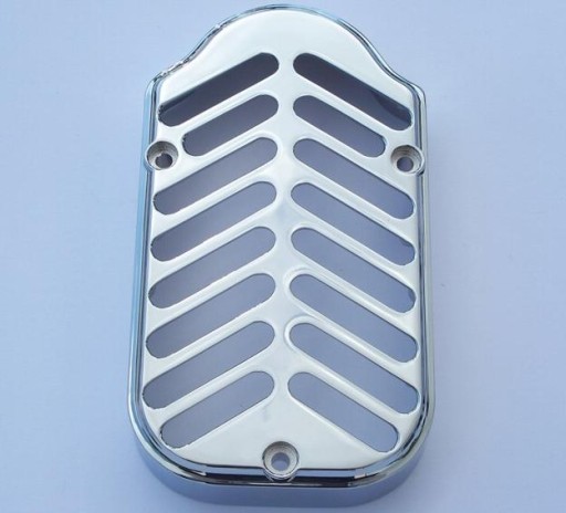 WYSOKIEJ JAKOŚCI, STALOWY, CHROMOWANY GRILL - NAKŁADKA DO TYLNEJ LAMPY "TOMBSTONE". CIĘŻKI I SOLIDNIE WYKONANY, DOSKONALE CHRONI KLOSZ LAMPY PRZED USZKODZENIEM. NADAJE LAMPIE NIEPOWTARZLANY WYGLĄD.