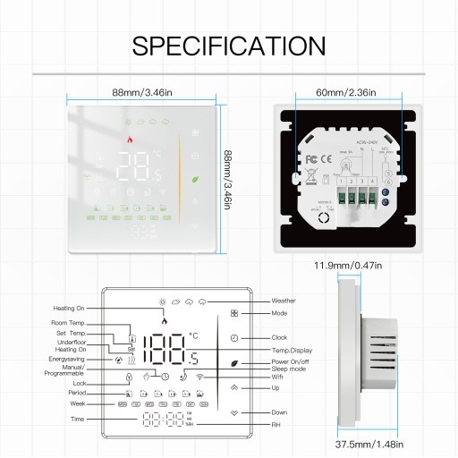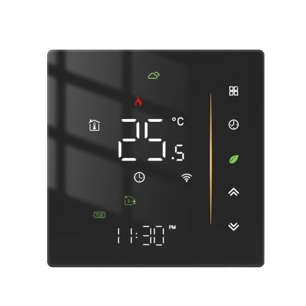 1. Funkcjonalny system grzewczy: sterowanie za pomocą protokołu Tuya Zigbee dołączonego do inteligentnej podłogi wodnej, ogrzewania elektrycznego i systemu ogrzewania kotła gazowego, zapewnia maksymalną i wszechstronną wygodę inteligentnego życia w zakresie temperatury w domu i łatwo monitoruje temperaturę w pomieszczeniu i wilgotność, ultrafiolet na zewnątrz ze stacji pogodowej na termostacie, koncentrując się na tworzeniu prostych, ludzkich, zachwycających uczuć dla twojego domu, a ten rodzaj koloru nadaje się do różnych stylów dekoracji. (Uwaga: obecne obciążenie wynosi 16 A dla elektrycznego ogrzewania podłogowego.)