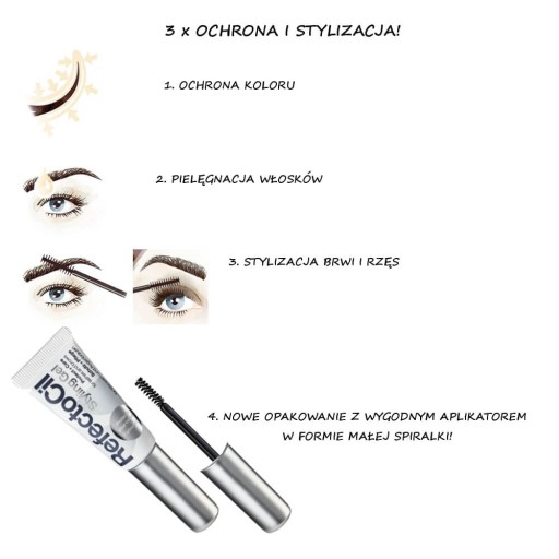 Unikalna formuła pielęgnująca kolor rzęs i brwi po koloryzacji, dzięki niej włoski zachowują kolor oraz blask na dłużej. D-Pantehnol nawilża i zapewnia połysk. Ponadto niesforne włosy są perfekcyjnie wystylizowane.