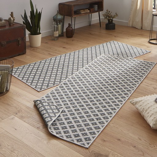 Ten piękny dywan, o płaskim splocie od marki Northrugs jest wykonany w 100%z polipropylenu i obszyty z czterech stron. Wprowadź różnorodność do swojej przestrzeni życiowej, ponieważ możesz wybrać jeden z dwóch różnych kolorów tego dywanu. Po prostu odwróć i masz inną - odwrotną kolorystykę. Dwustronny dywan można bez problemu stosować wewnątrz, w pokojach, korytarzach, łazienkach - jak i na zewnątrz, na tarasach, gankach czy w altanach.