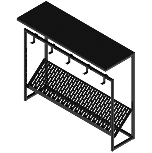Oryginalna konsola z haczykami oraz półką na buty, idealnie sprawdzi się w nowoczesnym wnętrzu nadając mu niezwykłego charakteru. Idealnie współgra z różnymi stylami architektonicznymi m.in. takimi jak: loft, industrial czy glamour.