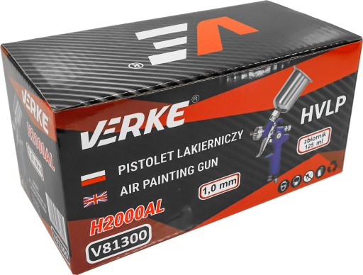 Wysokiej jakości niskociśnieniowe pistolety natryskowe HVLP marki Verke cechują się profesjonalną konstrukcją oraz dużą precyzją w nanoszeniu farby. Znakomite rozpylenie, szybkość w pracy, ergonomia oraz najwyższa jakość wykonania to ich najważniejsze atuty. Przeznaczone są do zastosowań różnego rodzaju działalnościach i dziedzinach. Wysokiej jakości dysza i iglica ze stali nierdzewnej oraz możliwość trzech regulacji zapewniają pełną kontrole nad pracą. Pistolety Verke charakteryzują się ergonomiczną i lekką rękojeścią, pozwalającą na długą i komfortową pracę.