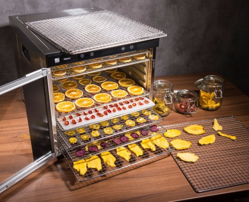 Wszystkie trzy rodzaje tac wykonane są z bezpiecznych materiałów, które nie wymagają szczególnej pielęgnacji. Tace są wyjmowane, można całkowicie wysunąć je z suszarki, dokładnie rozłożyć produkty, a następnie odłożyć na miejsce.