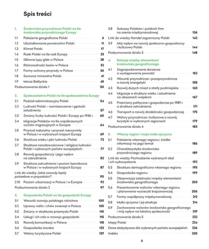 Podstawowe narzędzie pracy ucznia i nauczyciela. Starannie zaprojektowana szata graficzna, przemyślana struktura podręcznika oraz czytelna nawigacja ułatwiająca naukęgeografii. Dzięki zachowaniu właściwych proporcji tekstu w stosunku do ilustracji publikacja ta jest przyjazna dziecku.