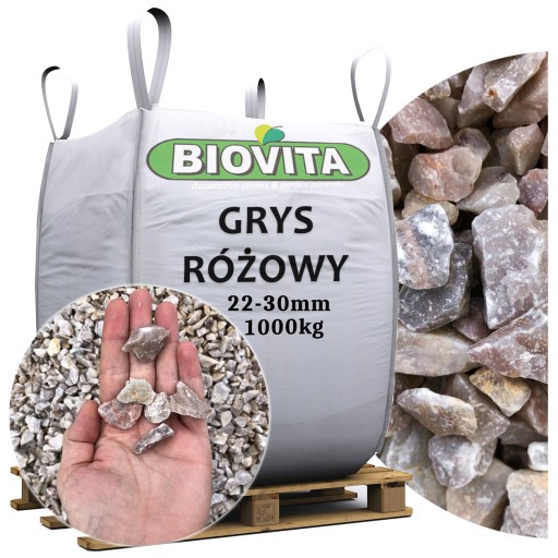 Oferta zawiera 1000kg kamienia "Grys Różowy" 8-16mm w big bagu (w jednym tonowym worku typu big bag). Wielkość kamieni może się lekko różnić od podanej frakcji - sito ma wielkość 8-16, natomiast kamienie mogą się zdarzyć troszkę większe lub mniejsze.By uzyskać ładny efekt dekoracyjny zalecane jest przykrycie podłoża agrowłókniną, następnie dopiero wysypujemy grys.