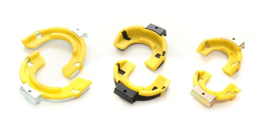 Ściski TAGRED posiadają dodatkowe nakładki które stabilizują sprężynę w monecie ścisku i zabezpieczają przed porysowaniem sprężyny.