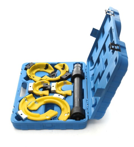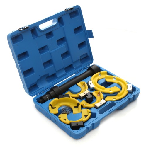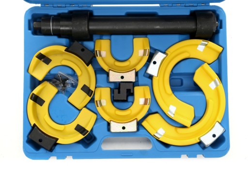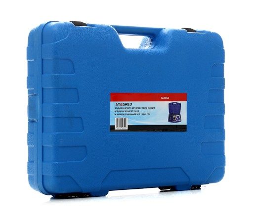 Profesjonalny zestaw do ściągania sprężyn w samochodach osobowych i dostawczych. Nasz zestaw ceniony jest za uniwersalność- można stosować w samochodach BMW, TOYOTA, MITSUBISHI, VW, AUDI, SAAB, NISSAN, HONDA, SUBARU, VOLVO, OPEL, PORSCHE. Wszystkie elementy zestawu TAGRED wykonano z bardzo wytrzymałej grubej stali, która wytrzymuje duże siły ścisku. Zaletą tego typu ściągaczy jest wysoka siła ściskania rozłożona na dużą powierzchnię, unikamy tym samym uszkodzeń sprężyn i niebezpieczeństwa zerwania ściągacza. Ściski TAGRED posiadają dodatkowe nakładki które stabilizują sprężynę w monecie ścisku i zabezpieczają przed porysowaniem sprężyny.