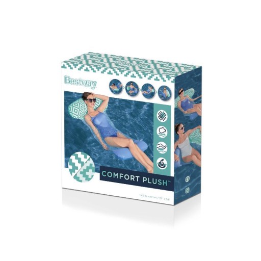 - Zagłówek oraz podnóżek są dmuchane co zapewnia wystarczającą wyporność, aby kolana i głowa unosiły się na powierzchni.