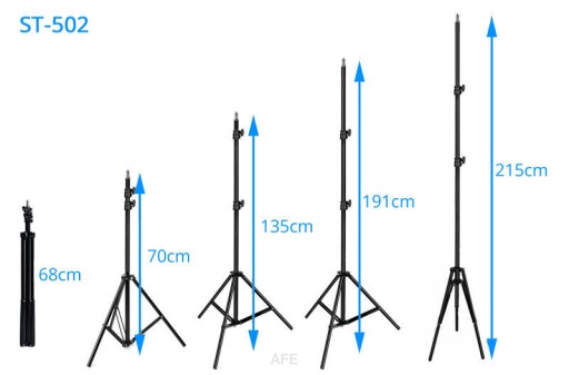 Teleskopowy mechanizm rozkładania minimalizuje wymiary statywu po złożeniu oraz pozwala na jego błyskawiczne rozkładanie lub składanie, dzięki czemu uzyskamy szeroki zakres pracy (regulowany jest płynnie na dowolnej wysokości w zakresie 70-215 cm).