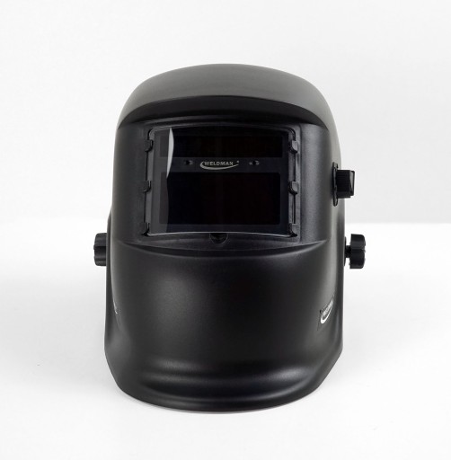 Przyłbica automatyczna, wykonana z polimeru, jest zasilana przez baterie i ogniwa solarne.