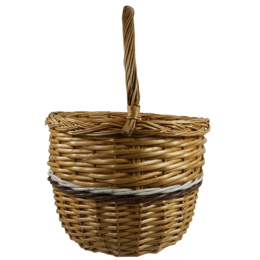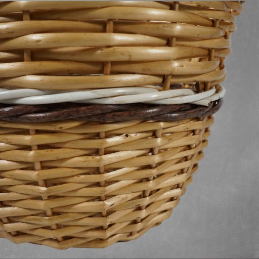 - wykonany z wikliny w naturalnym odcieniu posiada dekoracyjny akcent w postaci biało-brązowego paska na środku