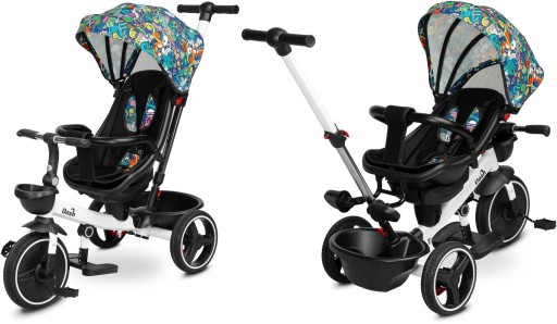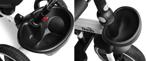 Trójkołowy rowerek Dash jest świetną alternatywą dla wózka spacerowego. Może być używany jako rowerek, na którym dziecko może jeździć samodzielnie, jak i jako wózek z daszkiem, w którym dziecko może być przewożone zarówno przodem jak i tyłem do kierunku jazdy. Z przodu i z tyłu rowerka znajdują się koszyki pozwalające na przewożenie drobiazgów. Rowerek wyposażony jest w 2 podnóżki: wystający z ramy rowerka i przymocowany do siedziska. Każdy z podnóżków jest regulowany dla wygody dziecka. Tylne koła rowerka wyposażono w hamulce, pozwalające na bezpieczne pozostawienie rowerka bez obaw o to że sam odjedzie.