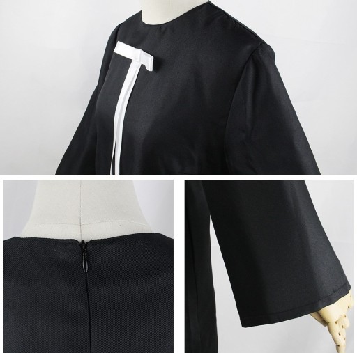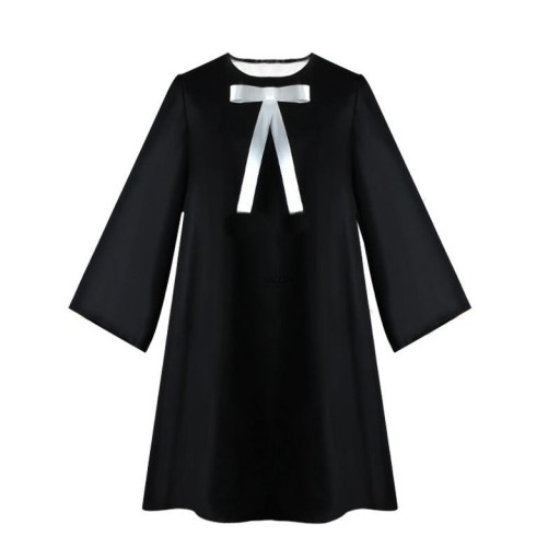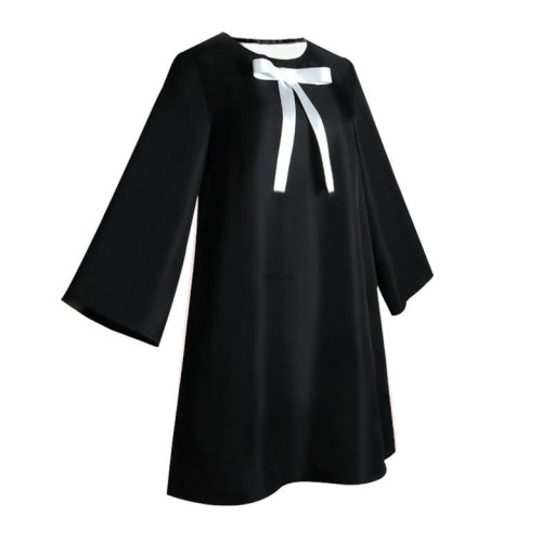 - Sukienka w odcieniach koloru czarnego z białą kokardką,