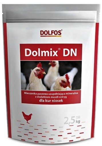Mieszanka, która zawiera zestaw dokładnie zbilansowanych witamin, aminokwasów, makro- i mikroelementów niezbędnych dla prawidłowego funkcjonowania i produkcyjności niosek. Zawiera muszle ostryg jako jedno ze źródeł wapnia, które powodują dobre wykształcenie i twardość skorup jaj. Dolmix DN podnosi wydajność nieśną, intensyfikuje zabarwienie żółtek, zapobiega wystąpieniu stanów niedoborowych i korzystnie wpływa na ogólną kondycję ptaków.