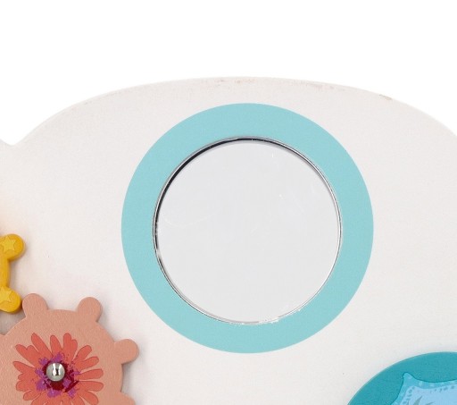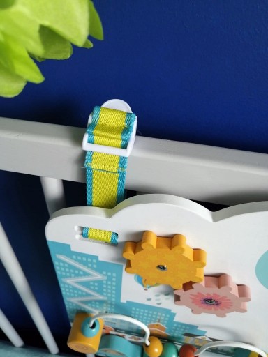 Tablica wykonana z drewna, na stabilnych nóżkach oraz z dwoma paskami na górze. Dzięki temu w zależności od Waszych preferencji możecie ją postawić na blacie lub zawiesić np. na łóżeczko. Pięknie wykonana zabawka, w atrakcyjnej kolorystyce, sporych rozmiarów i z nowymi bohaterami.