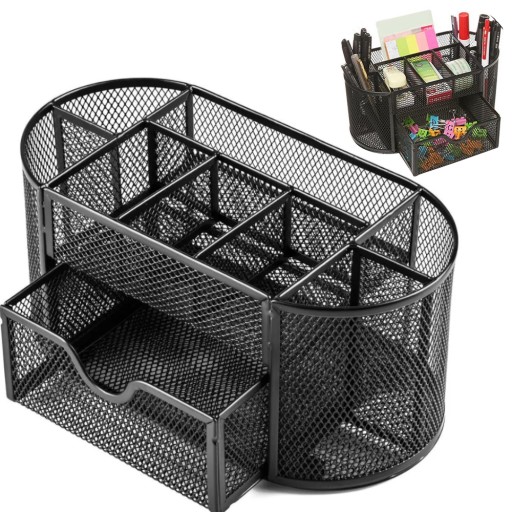 - FUNKCJONALNY - posiada aż 9 komór, dzięki czemu można łatwo segregować i organizować materiały biurowe, takie jak długopisy, wizytówki, zszywki czy kalkulatory.