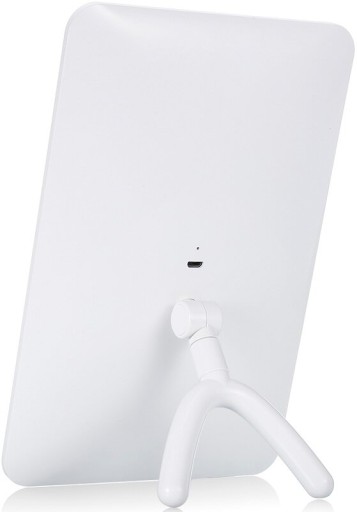 Lusterko kosmetyczne PMLY6W firmy Platinet, w którego ramce umieszczono oświetlenie LED z możliwością regulacji. Na dole lustra znajduje się dotykowy przycisk, którego krótkie dotknięcie aktywuje, lub wyłącza oświetlenie, natomiast dłuższe, 3-sekundowe przytrzymanie pozwala na regulację jego jasności. Regulowana podstawka pozwala na odpowiednie ustawienie, a także całkowite złożenie umożliwiające wygodny transport. W lusterku kosmetycznym znajduje się akumulator o pojemności 600 mAh, który pozwala na pracę niezależną od obecności gniazdek elektrycznych. Na tylnej ściance lusterka znajdziesz złącze microUSB, dzięki czemu naładujesz je tradycyjną ładowarką do smartfonów. W zestawie kabel USB do ładowania.