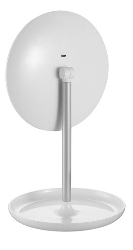 Lusterko kosmetyczne PMLY7W firmy Platinet, w którego ramce umieszczono oświetlenie LED z możliwością regulacji. Na dole lustra znajduje się dotykowy przycisk, którego krótkie dotknięcie aktywuje, lub wyłącza oświetlenie, natomiast dłuższe, 3-sekundowe przytrzymanie pozwala na regulację jego jasności. Regulowana podstawka pozwala na odpowiednie ustawienie, a także całkowite złożenie umożliwiające wygodny transport. W lusterku kosmetycznym znajduje się akumulator o pojemności 600 mAh, który pozwala na pracę niezależną od obecności gniazdek elektrycznych. Na tylnej ściance lusterka znajdziesz złącze microUSB, dzięki czemu naładujesz je tradycyjną ładowarką do smartfonów. W zestawie kabel USB do ładowania.