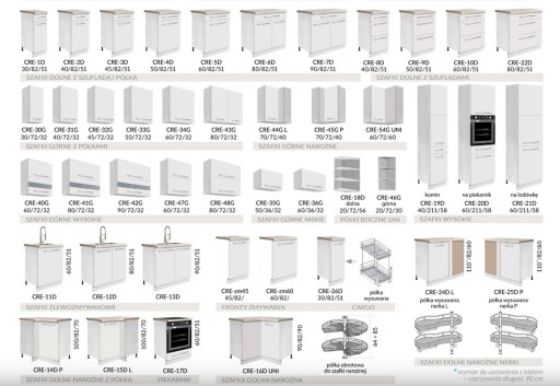 Cena obejmuje wyrys szafek dostosowany do Państwa pomieszczenia.