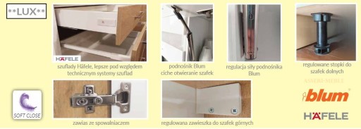 - szuflady: z samodociągiem i cichym domykiem LUX