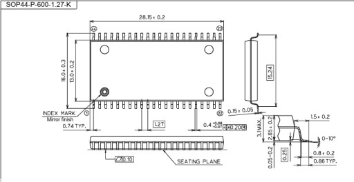 - Wyprowadzenia: SOP 44-pin --> DIP 44-pin 1:1