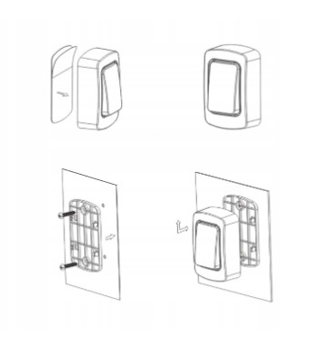 W związku z różnorodnością modeli, nadajnik można przymocować przy użyciu dołączonej dwustronnej taśmy lub śrub. Do każdego modelu, który oferujemy, dołączamy specjalną taśmę dwustronną, a dla modeli z opcją montażu na śrubach, dostarczamy również śruby.