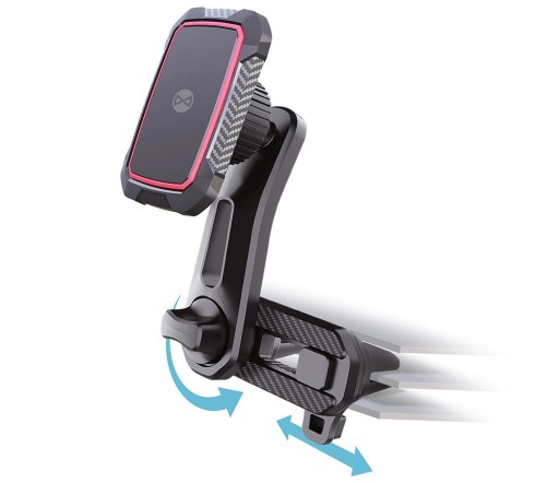 Magnetyczny uchwyt MH-250 ma wyjątkowo stabilny system do mocowania w samochodowych kratkach wentylacyjnych. MH-250 wyróżnia się możliwością dopasowania do różnej szerokości kratki dzięki dwóm zatrzaskom. Daje to większą stabilizację uchwytu i telefonu. Konstrukcja pałąka pozwala na unikanie nagrzewania się urządzeń przez ciepłe powietrze z nawiewu. Dodatkowo ramię uchwytu ma regulowany kąt w kilku punktach. Magnetyczną podkładkę, na której mocowany jest telefon, wyposażono w aż 6 mocnych magnesów. Przymocowany telefon można obracać o 360 °. Zestaw zawiera 2 naklejki magnetyczne. Wymiary po rozłożeniu: 45 x 75 x 120 mm. Maksymalne obciążenie końcówki magnetycznej wynosi 1,3 kg.