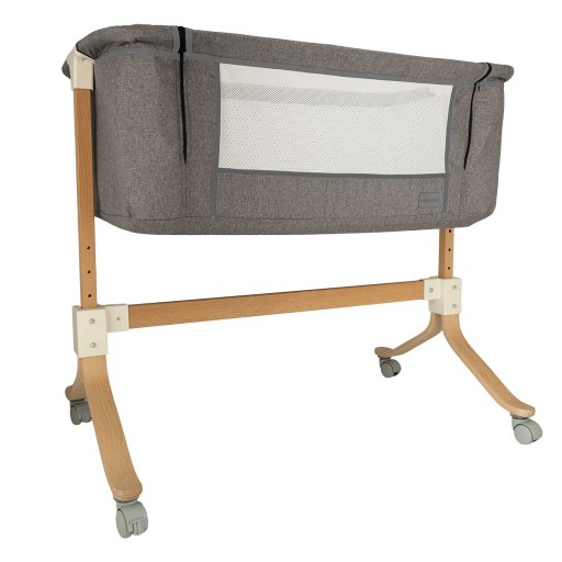 ŁÓŻECZKO DOSTAWKA DLA NIEMOWLĄT DZIECI KOŁYSKA DREWNIANA NA KÓŁKACH KOJEC SZARY
